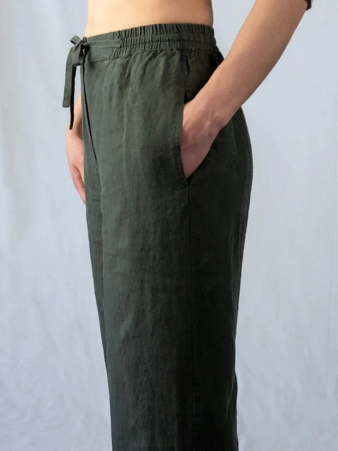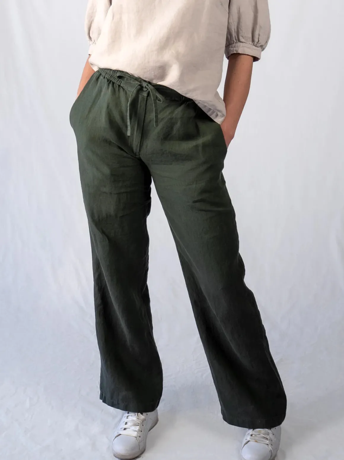 Asta-housuista tulee varmasti lempihoususi, sillä niin mukavilta ne tuntuvat päällä. Lisäksi ne istuvat todella kauniisti monelle eri vartalotyypille. Ei siis ihme, että Asta-housut ovat yksi CUOSIn suosituimpia malleja. Housut on valmistettu laadukkaasta Öko-Tex sertifioidusta 100% pellavasta. Housujen mitoitus on väljä ja rento, lahkeet kauttaaltaan leveät. Kiinnitys edessä hoituu vetoketjulla sekä napilla, mikä helpottaa pukemista ja jättää vatsan seudun armollisesti vähemmän poimutetuksi edessä. Vyötärökaitaleen taka- ja sivuosa ovat joustavat, lisäski vyötäröä voi säätää itselleen sopivaksi eteen solmittavalla nauhalla, joka kulkee vyötärökaitaleen sisällä. Sivusaumoissa on tilavat taskut. Housut on valmistettu esikutistetusta pellavakankaasta ja lisäksi ne on tuotepesty, joten kotipesussa kutistumaa ei enää tapahdu. CUOSI:n käyttämä pellava on erittäin laadukasta ja miellyttävän tuntuista ihoa vasten. Housut on ommeltu lähituotantona Virossa pienessä ompelimossa, ja pellavan alkuperämaa on Liettua.