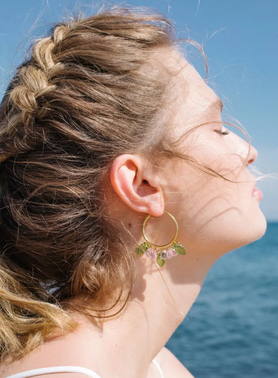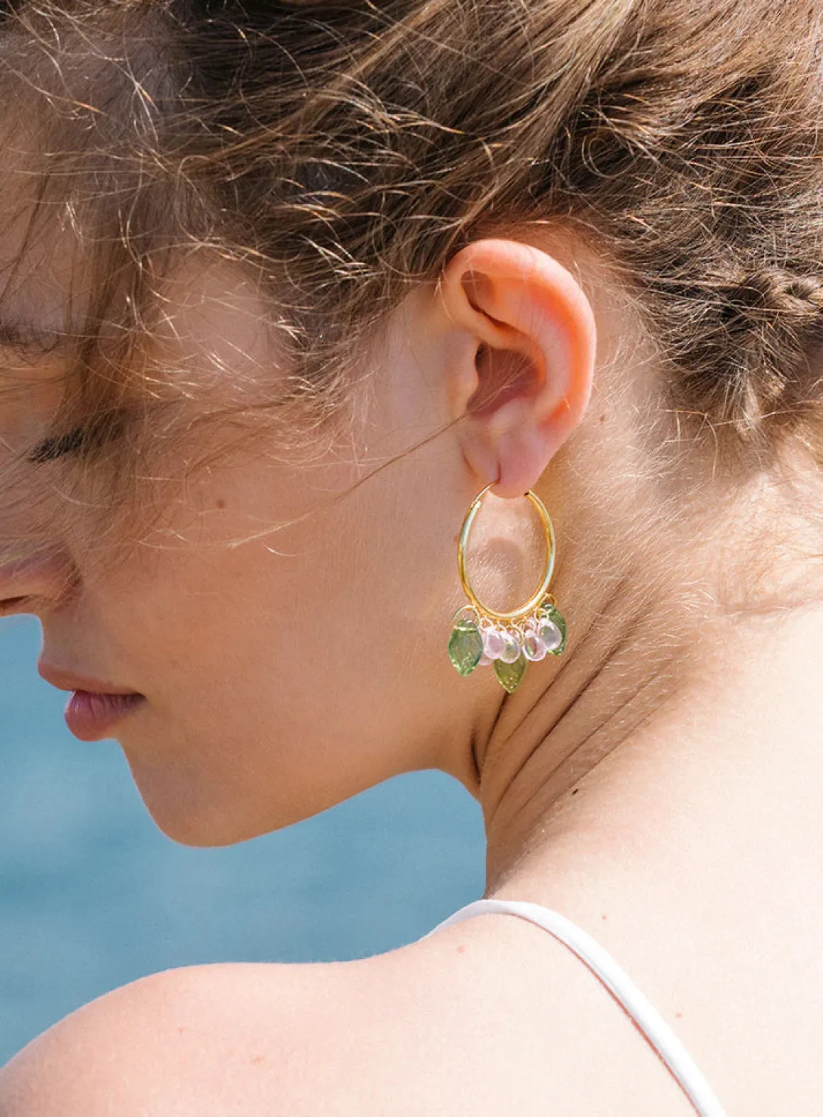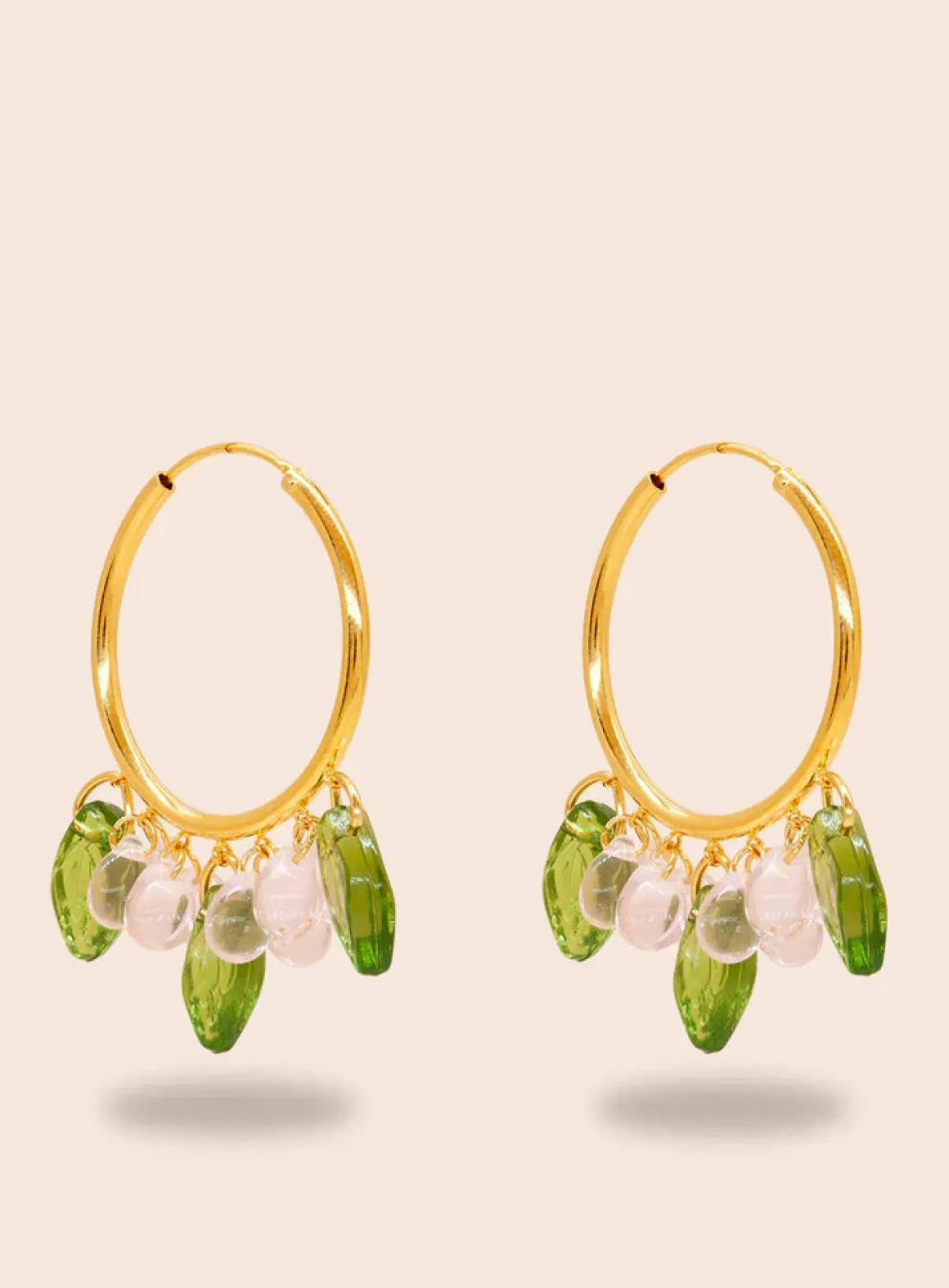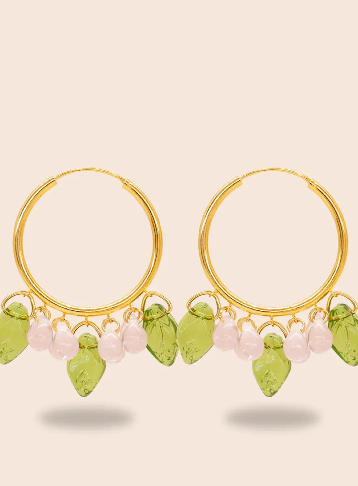 Serving up some sweet happiness. Berrymisu -korvakoruissa on 18k kullalla päällystetyt 925 sterling-hopearenkaat, lasihelmiä ja akryylilehdet.
