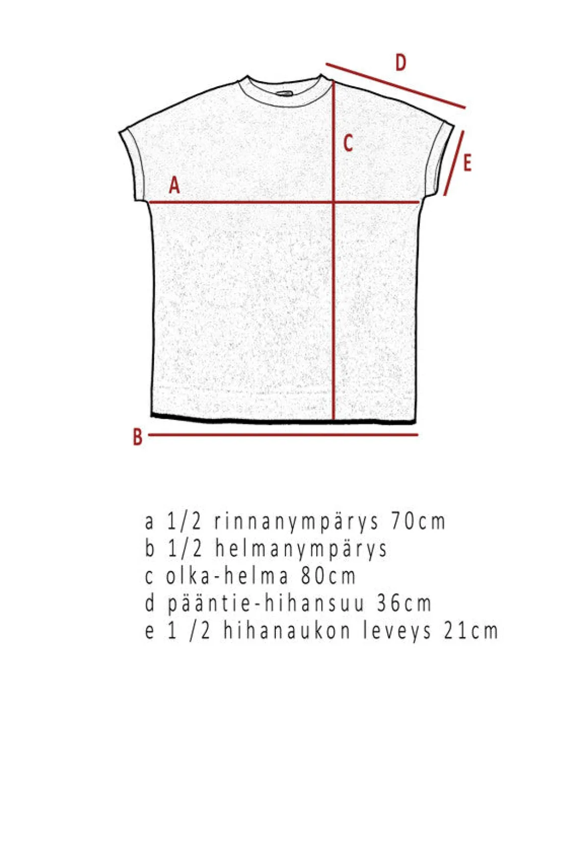 Laattikkomallinen puolipitkä t-paita pudotetulla olkalinjalla. Hihansuissa ja kauluksessa on kaksinkertaiset kaitaleet. Takana pitkittäissauma.