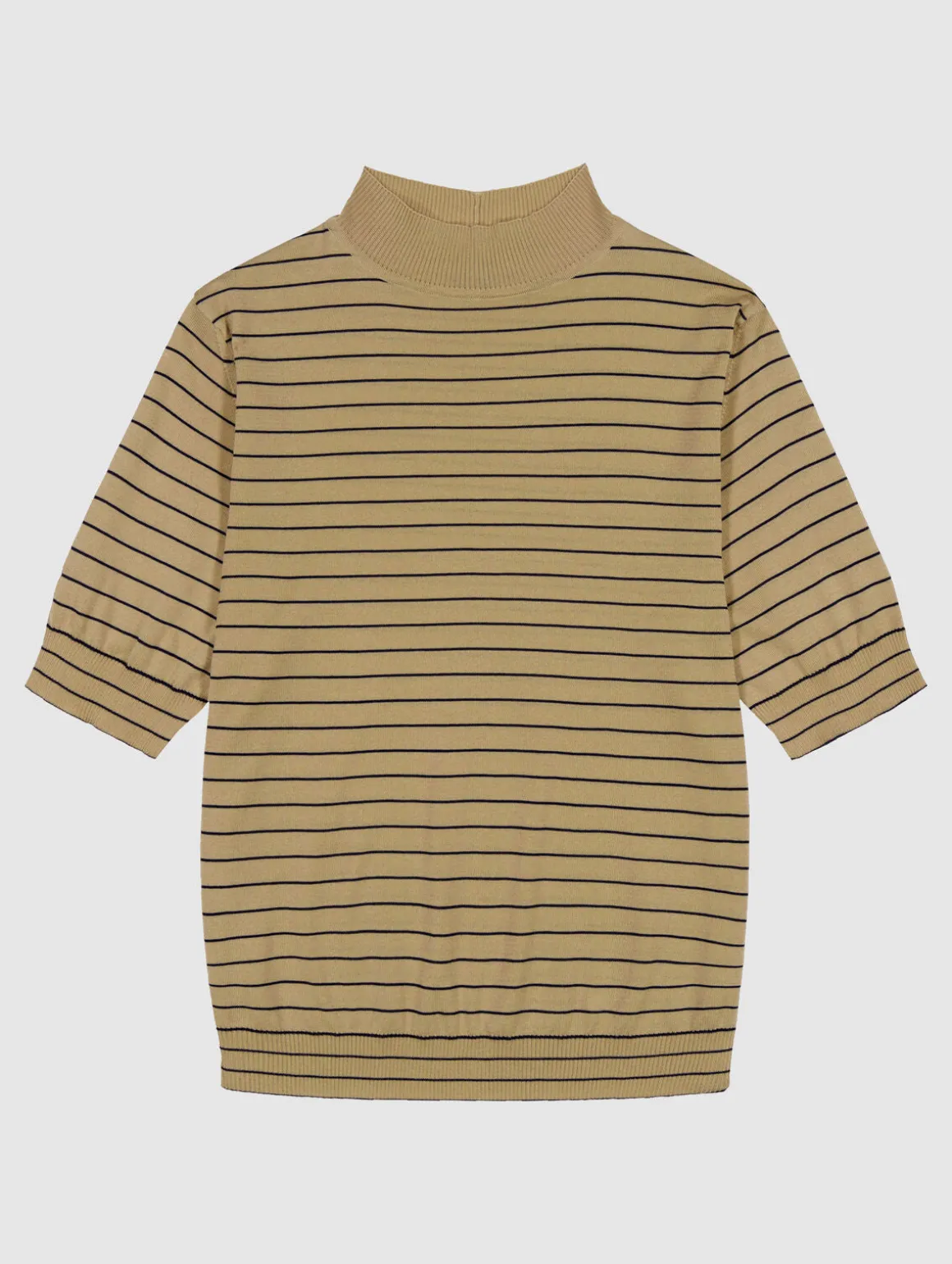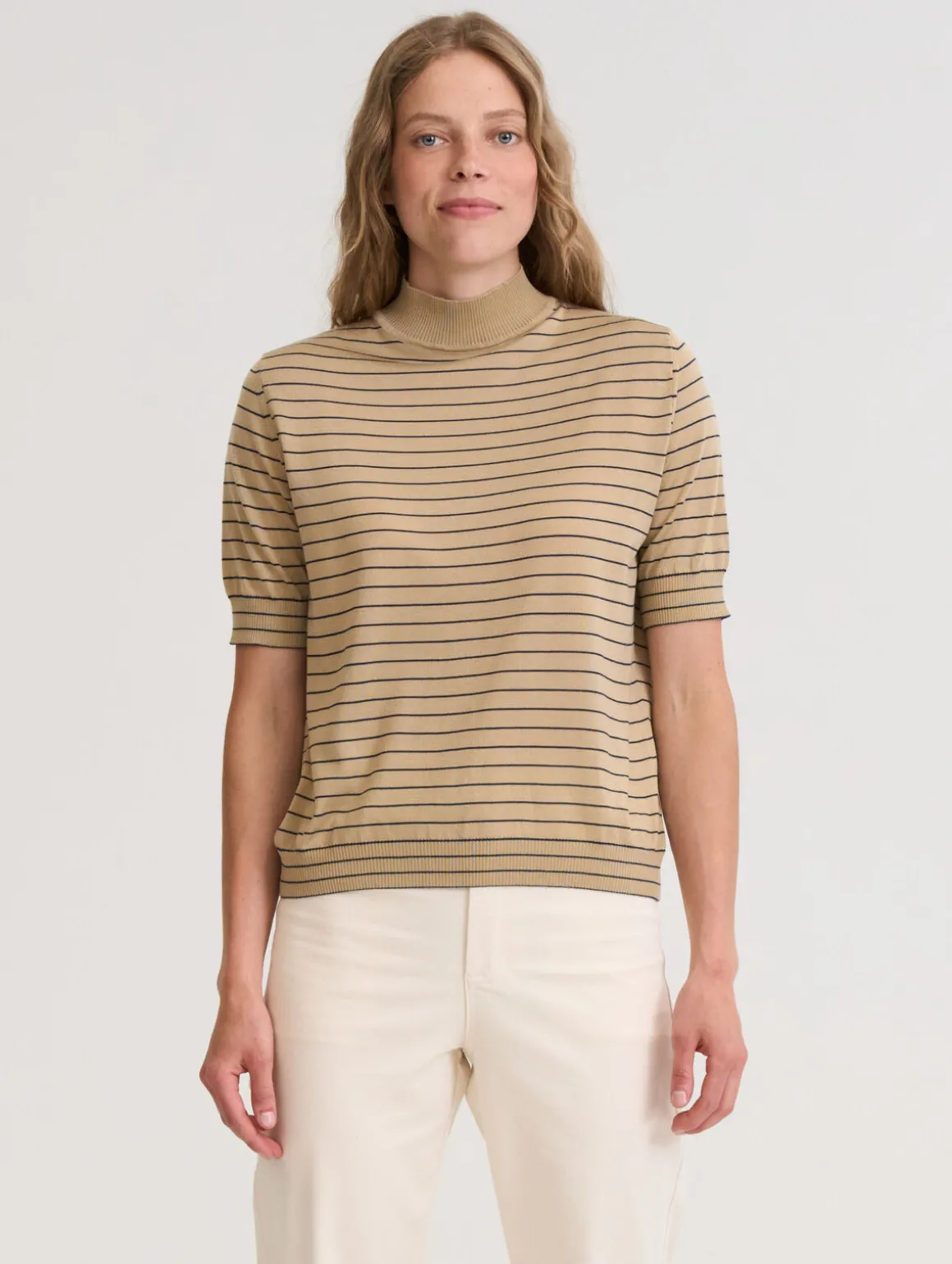 Ohuesta tencel-langasta valmistettu naisten T-paita. Matala poolokaulus ja lyhyet hihat resorilla. Helmassa resori.