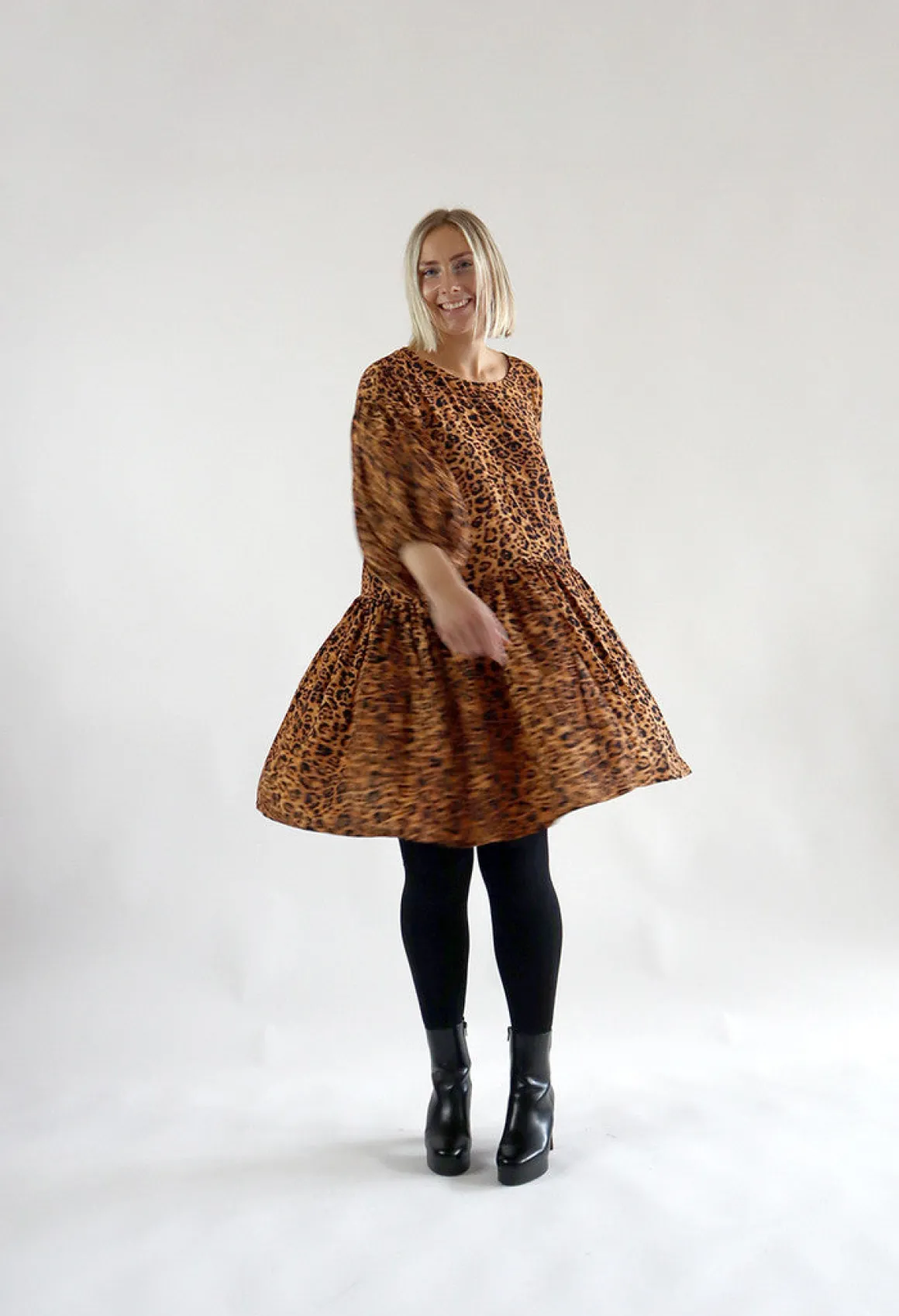 Flirty- mekko sopii hyvin moniin eri tilaisuuksiin. Tämä Flirty mekko on valmistettu 100% viskoosi kankaasta. Flirty- mekko on istuvuudeltaan oversize ja sen helmassa on runsas röyhelöleikkaus. Mekko laskeutuu kauniista ja on polvipituinen. Mekon sivusaumoissa on taskut. Mekko on hieman pidempi takaa. Mekossa on 3/4 pussihihat. Uudistunut laajempi pääntie.