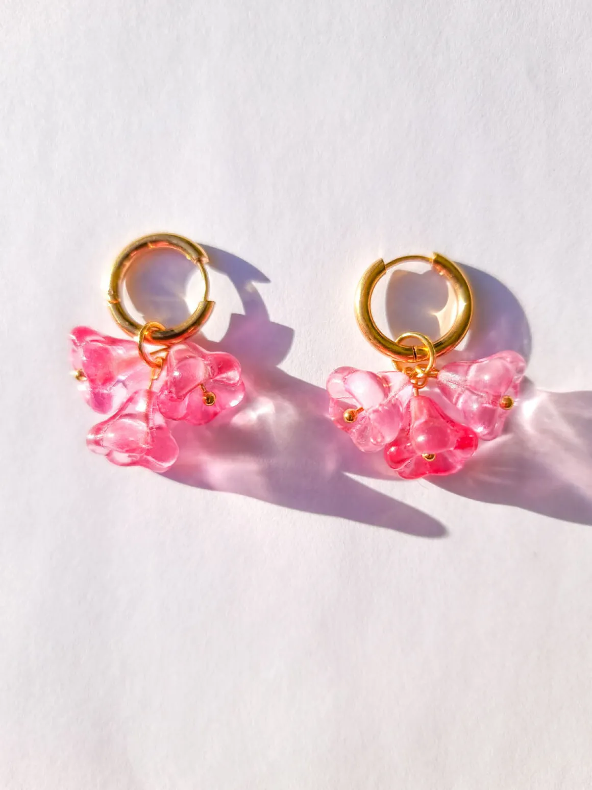 Kukan muotoiset lasihelmet, jotka kimaltavat kauniisti auringossa.