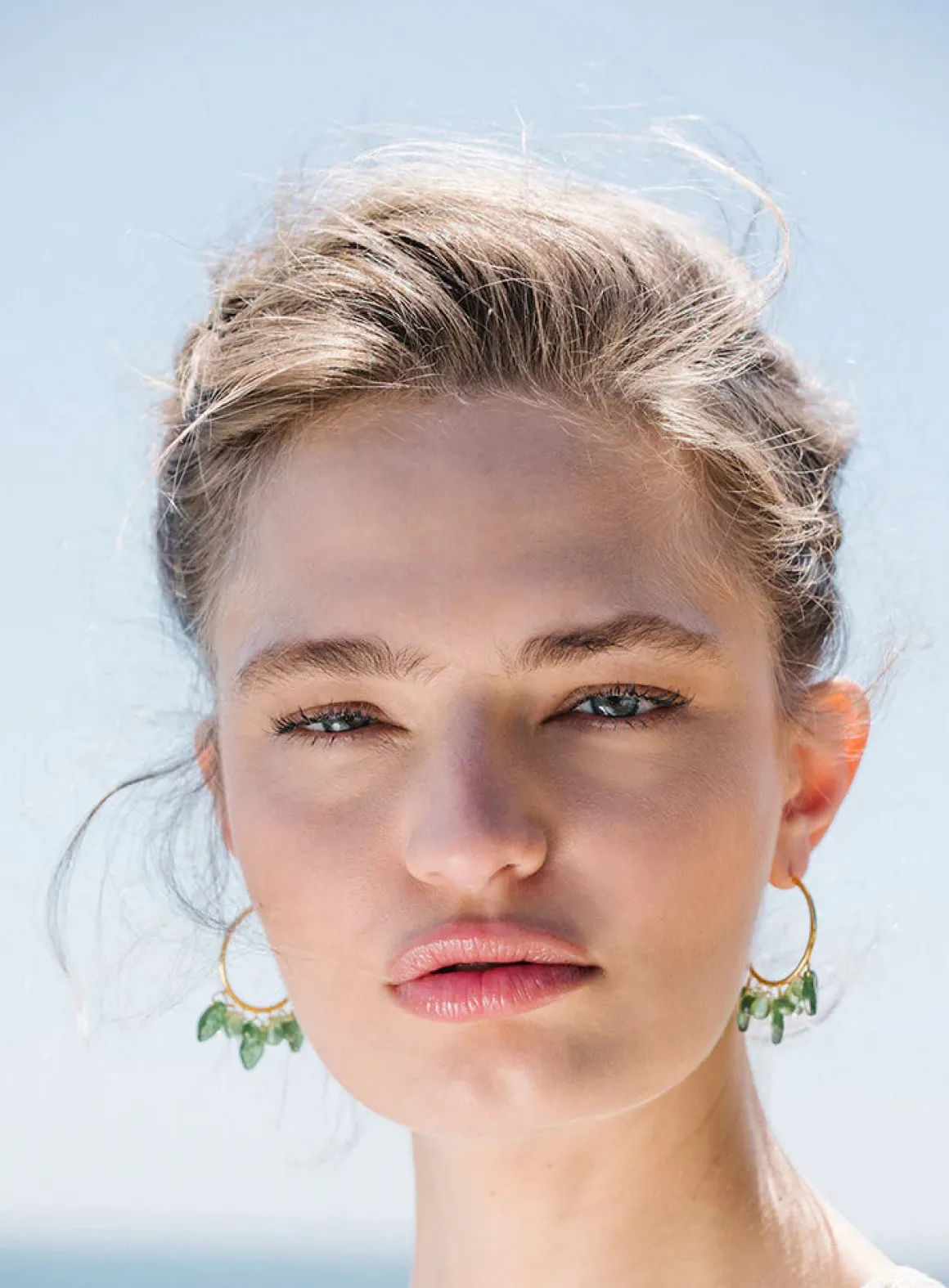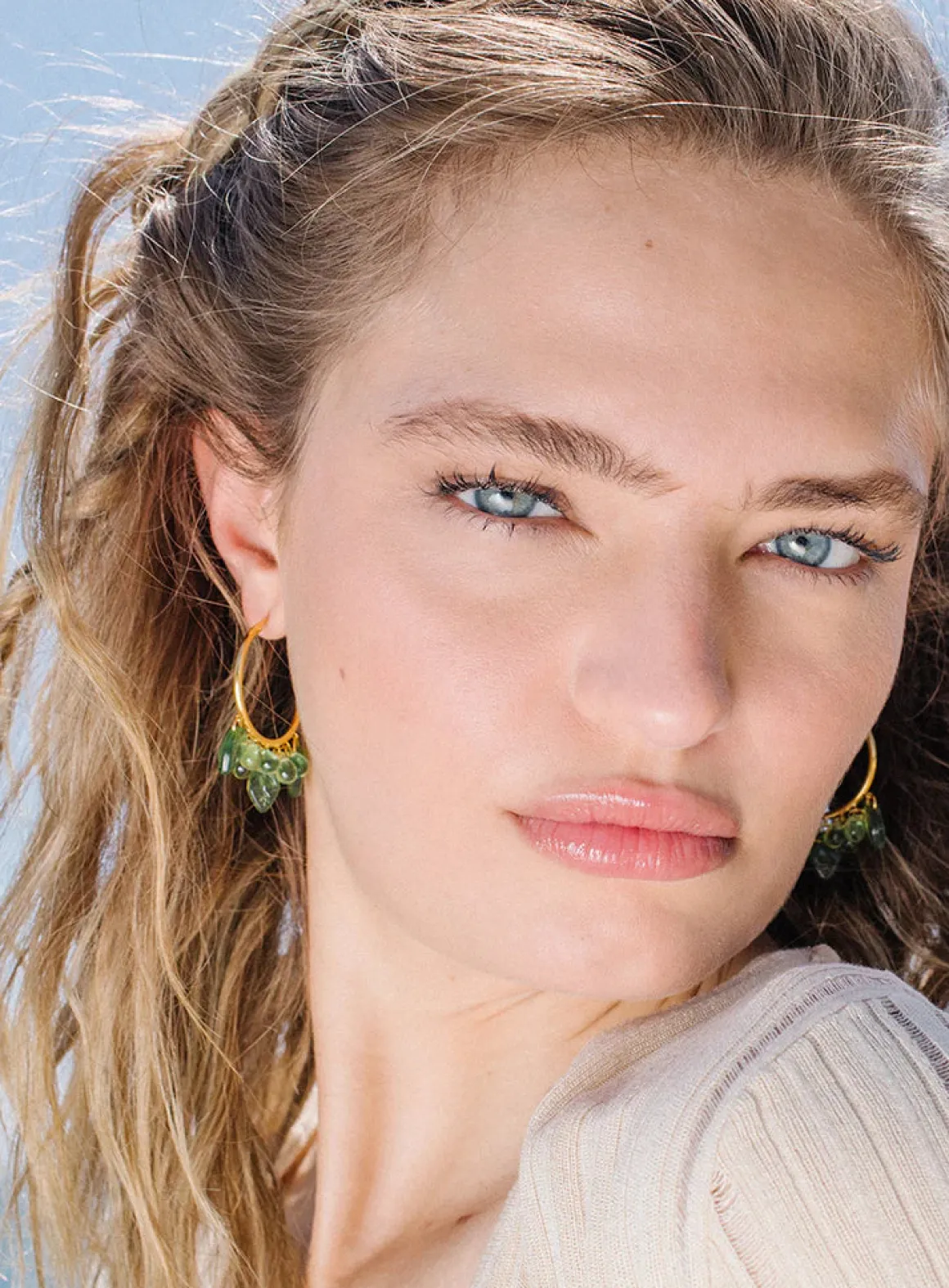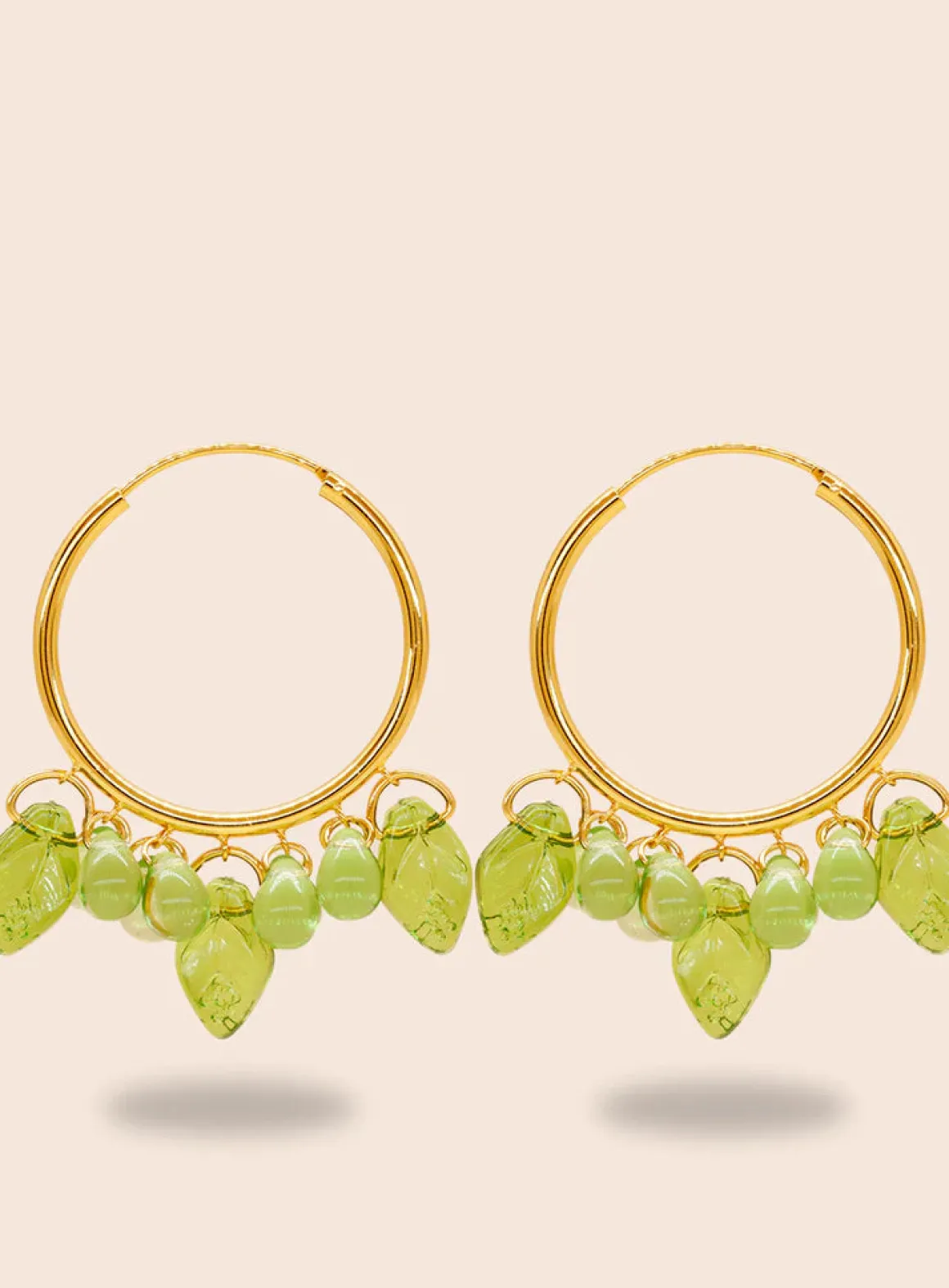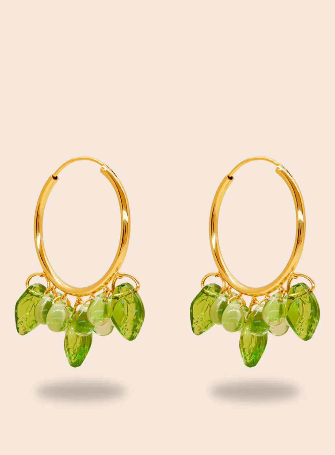 Taste the fizz. Grape Soda -korvakoruissa on 18k kullalla päällystetyt 925 sterling-hopearenkaat, lasihelmiä ja akryylilehdet.