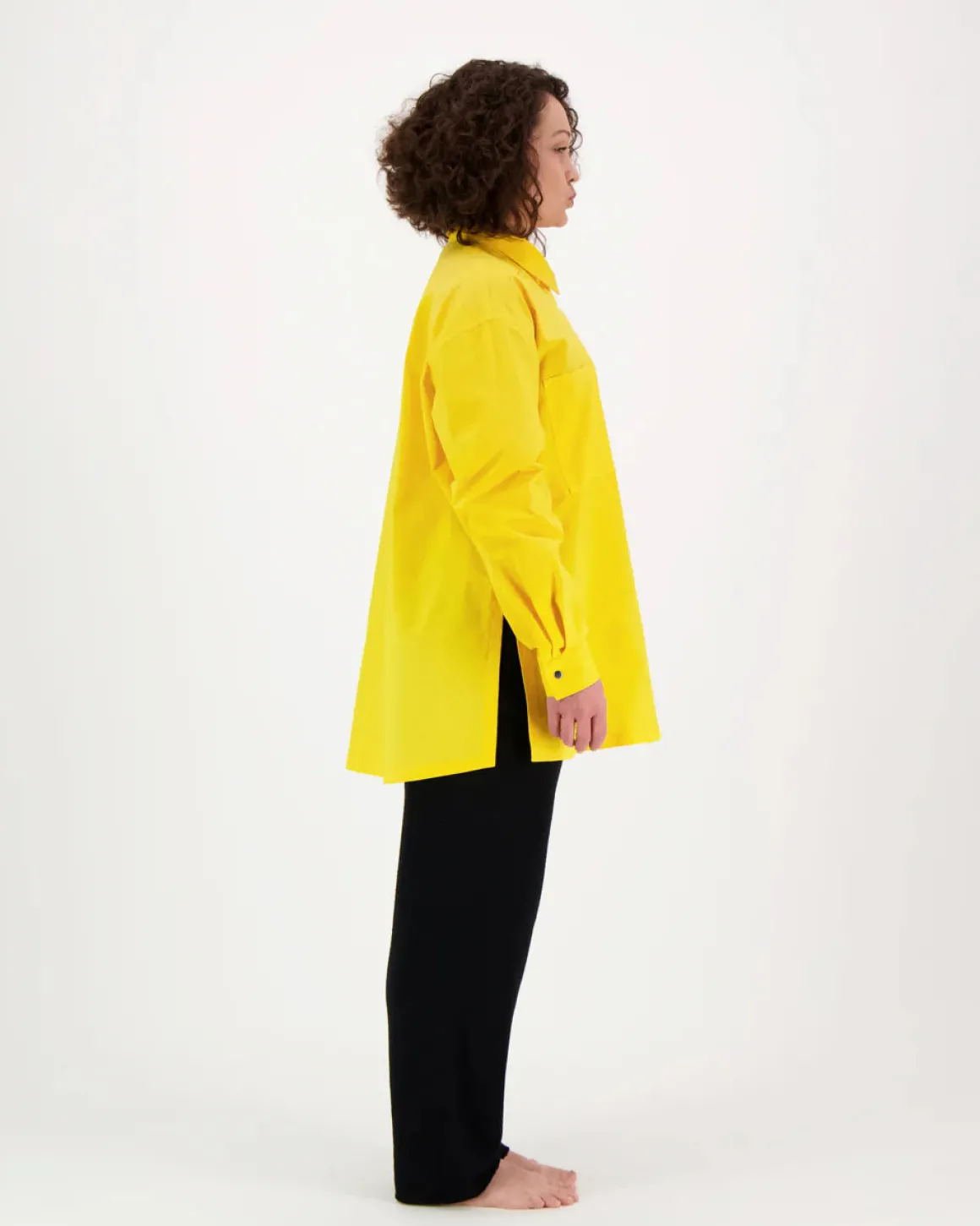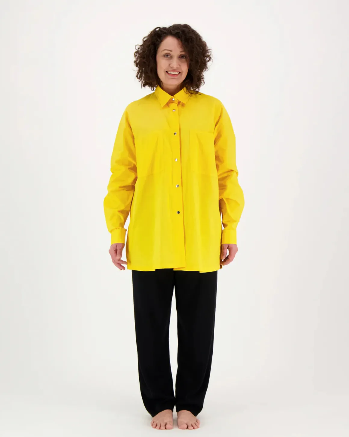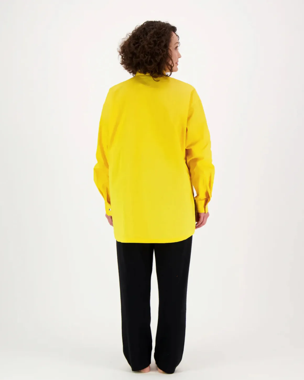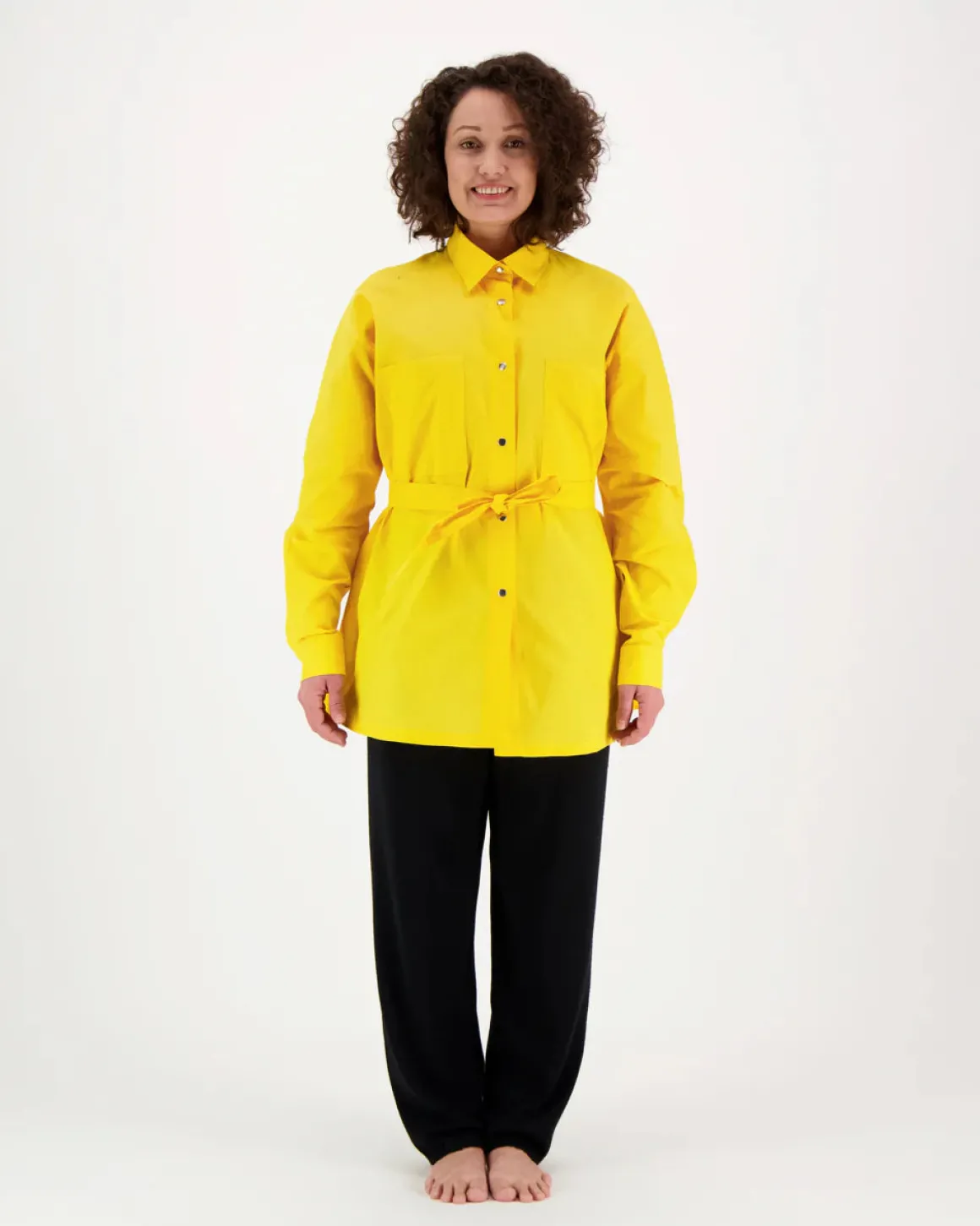 Rento yhden koon kauluspaita. Oversize- paidassa on kaksi rintataskua, nepparit edessä ja hihansuissa, halkiot sivussa ja laskokset selässä. Mukana myös vyö samasta kuosista.