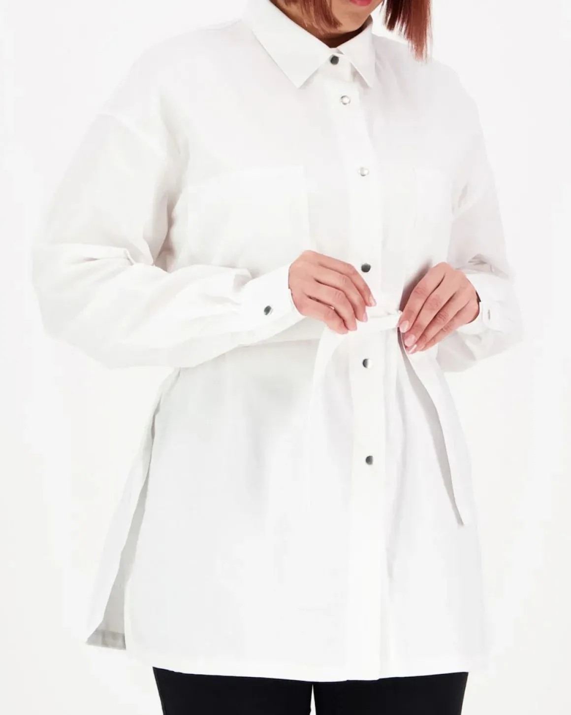 Rento oversize yhden koon kauluspaita. Paidassa on kaksi rintataskua, nepparit edessä ja hihansuissa, halkiot sivussa ja laskokset takana. Paidan mukana tulee myös irrallinen vyö samassa kuosissa, joka mahdollistaa paidalle myös toisenlaisen käyttötarkoituksen.