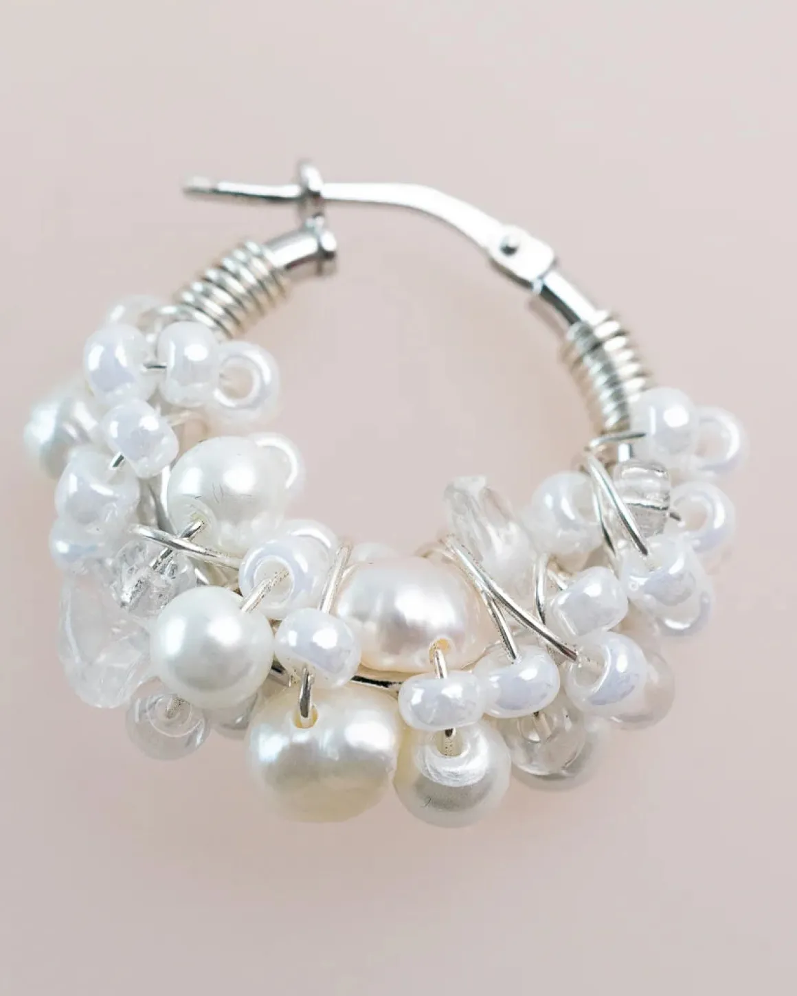 Helmillä koristellut näyttävät hopeakorvakorut! Koruihin on käytetty useita erilaisia helmiä tuomaan mielenkiintoa ja yksilöllisyyttä, mm. vuorikristallia sekä aitoja makeanvedenhelmiä. Jokainen korvakoru on ainutlaatuinen yksilö, sillä helmet on pujoteltu kiinni käsin yksitellen. Korujen metalliosat ovat laadukasta 925 sterling-hopeaa rhodium-pinnoitteella, joka estää hopeaa tummumasta. Korut toimitetaan kauniissa, vaaleanpunaisessa korurasiassa.