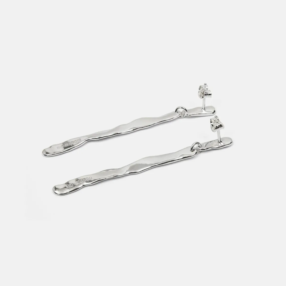 Elegant silver earrings with vivid surface that reflects light beautifully.