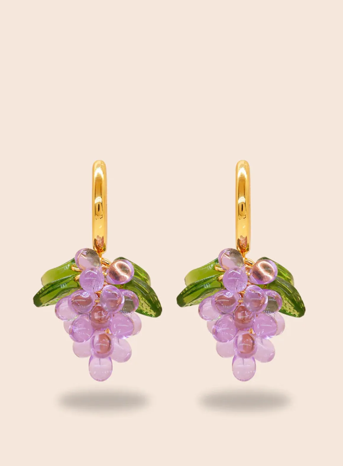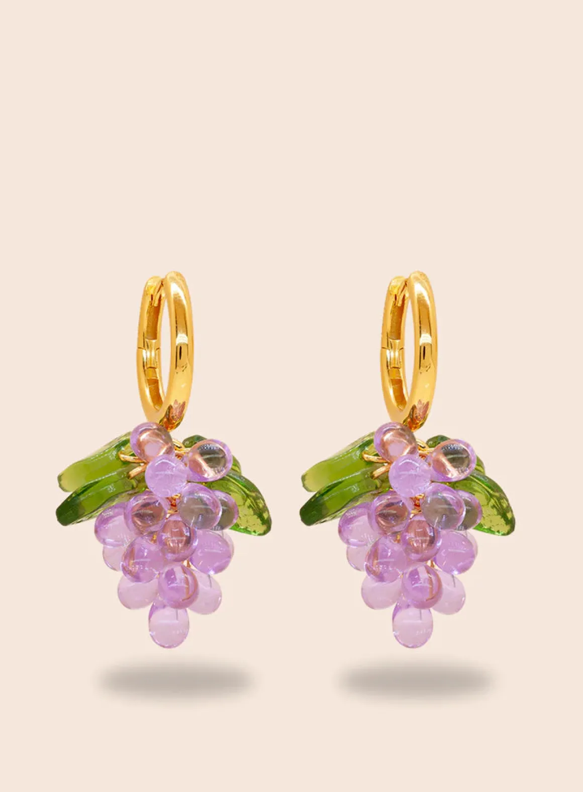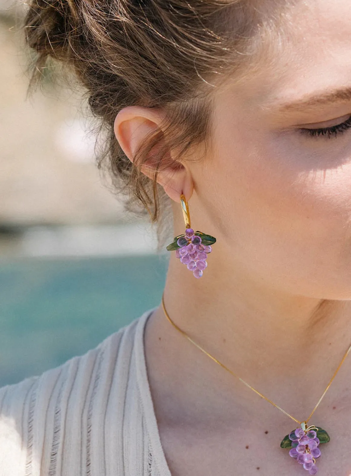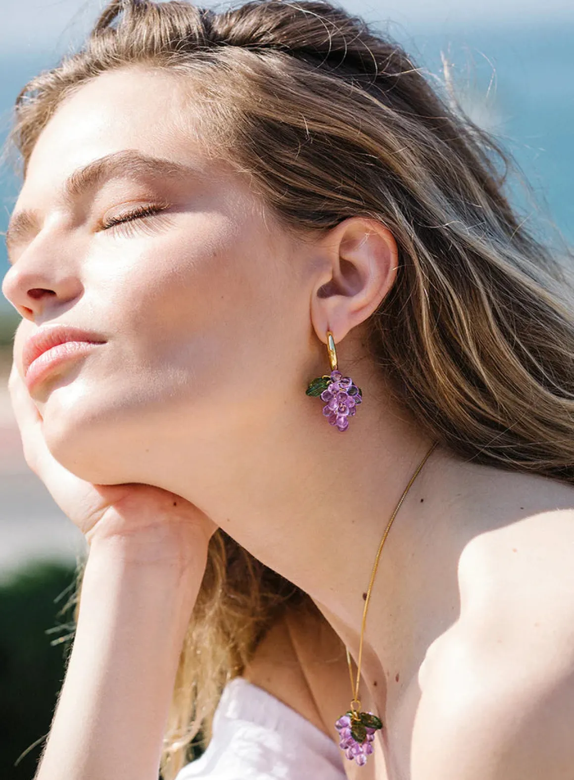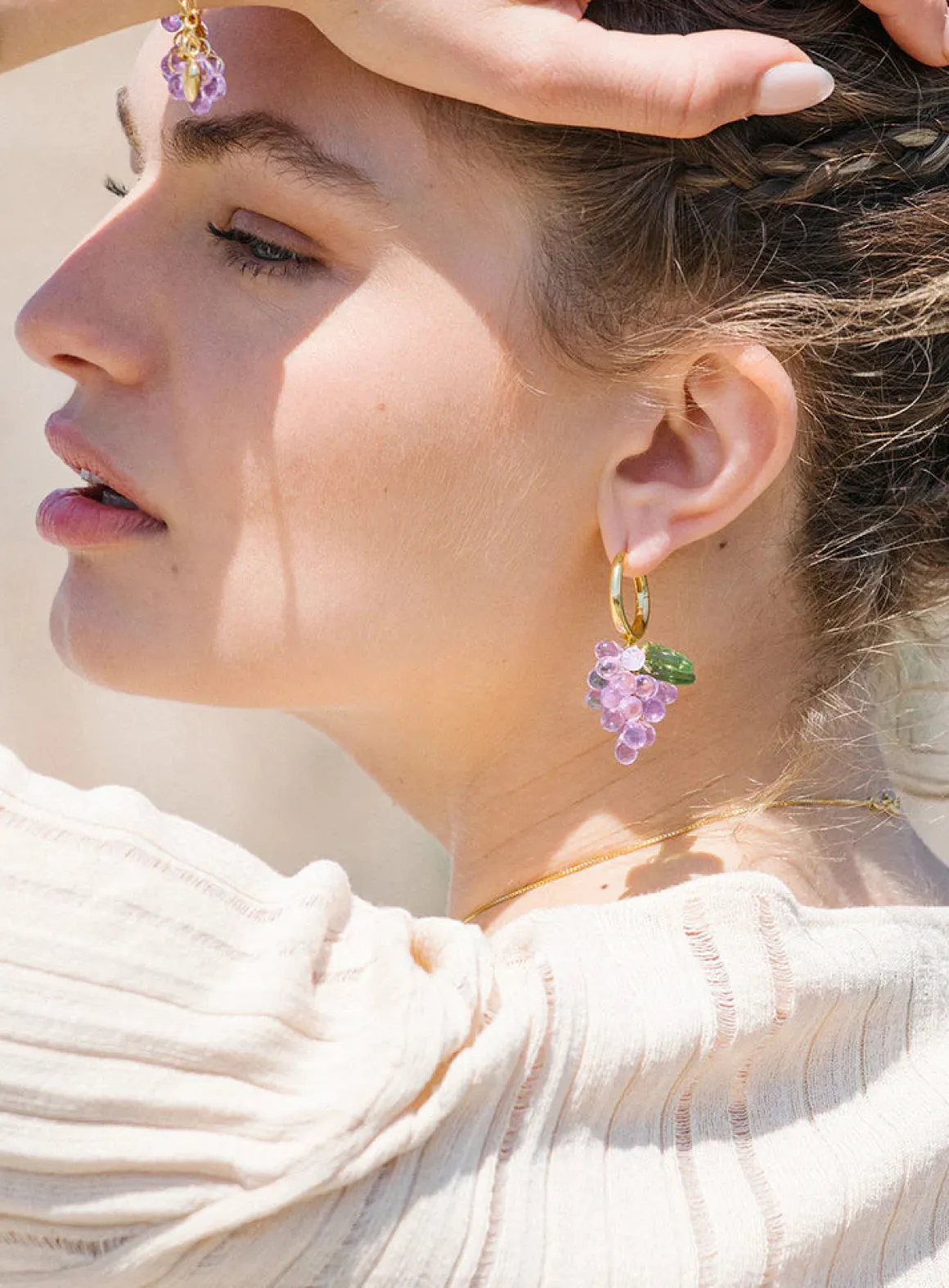 For the purple addict. Lavender Jelly -korvakoruissa on 18k kullalla päällystetyt 925 sterling-hopearenkaat, lasihelmiä ja akryylilehdet.