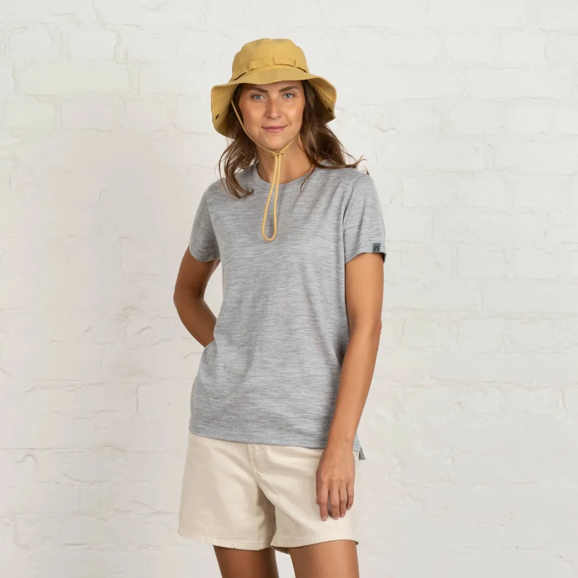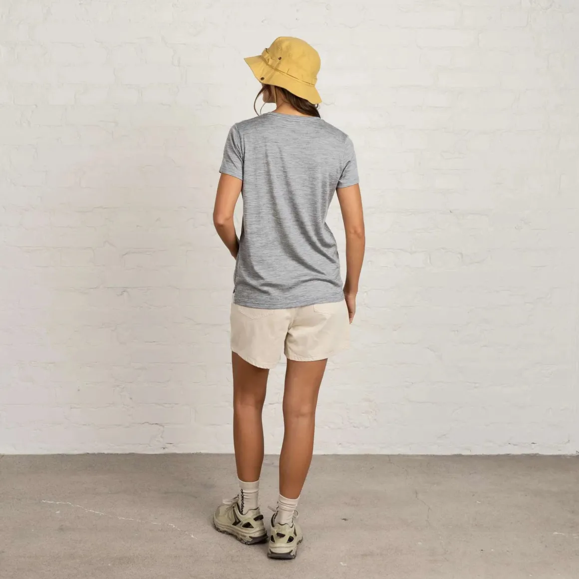 Kevyt ja monikäyttöinen naisten t-paita on vaatekaapin kulmakivi, joka soveltuu erinomaisesti aktiiviseen ulkoiluun, urheiluun sekä rentoon vapaa-aikaan ympäri vuoden. T-paita on valmistettu ohuesta ja silkkisen pehmeästä merinoneuloksesta, joka on joustava ja hengittävä. Se siirtää tehokkaasti kosteutta pois iholta, säätelee kehon lämpötilaa ja on luonnostaan antibakteerinen. Merinovillainen t-paita on täydellisen kevyt kantaa mukana ja soveltuu erinomaisesti retkeilyyn ja matkustukseen. T-paidan hartiasaumat on sijoiteltu niin, että ne eivät hierrä reppua kannettaessa.