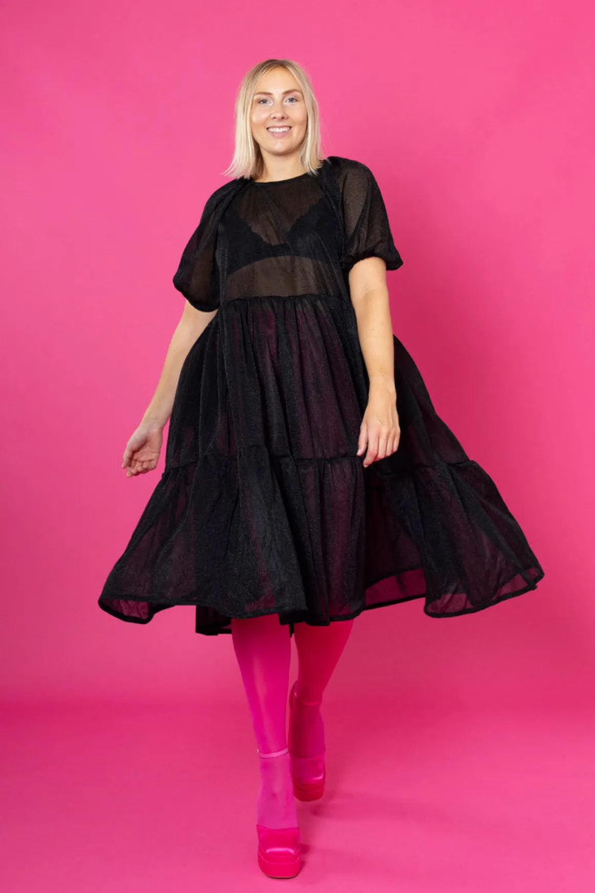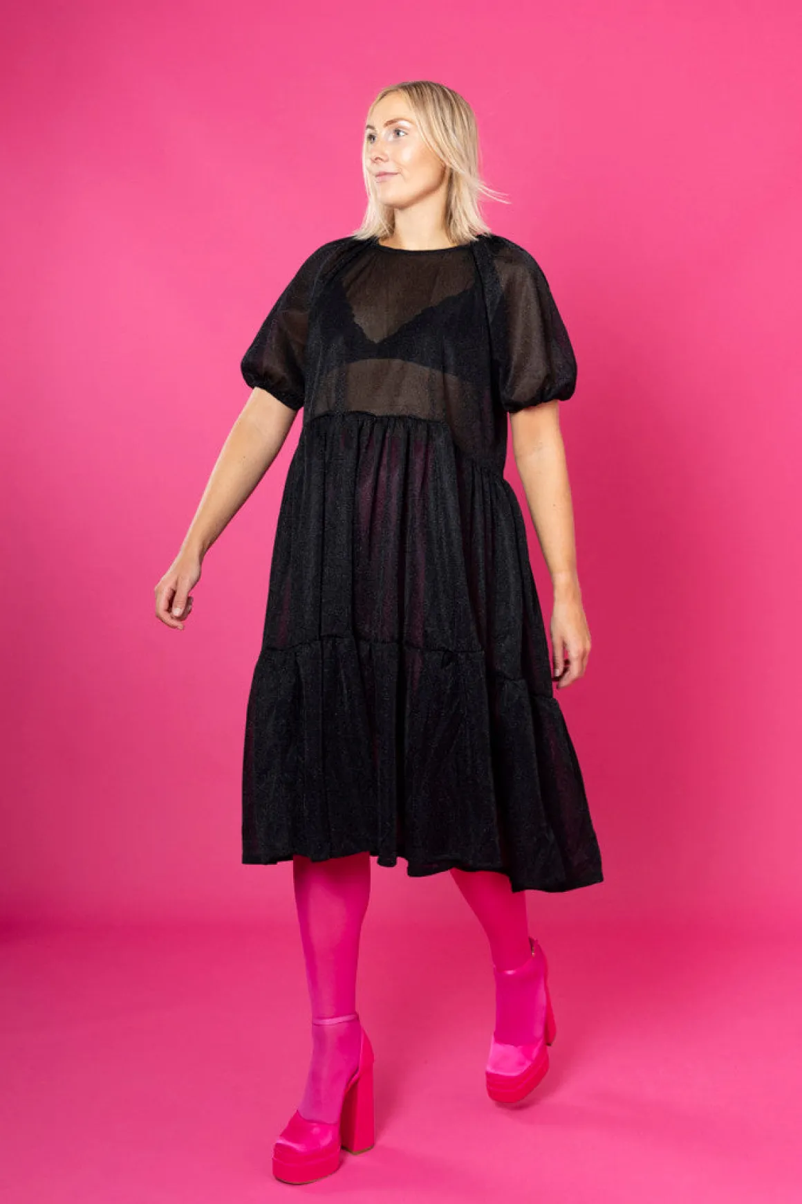 Lush- mekko sopii hyvin juhliin. Lush- mekko on istuvuudeltaan väljä ja sen helmassa on runsas röyhelöleikkaus. Mekko laskeutuu kauniista, mutta pitää runsaan muotonsa. Lush- mekko on polvipituinen. Mekossa on lyhyet puhvihihat joustoreunalla. Mekko solmitaan kiinni nauhalla takaa.