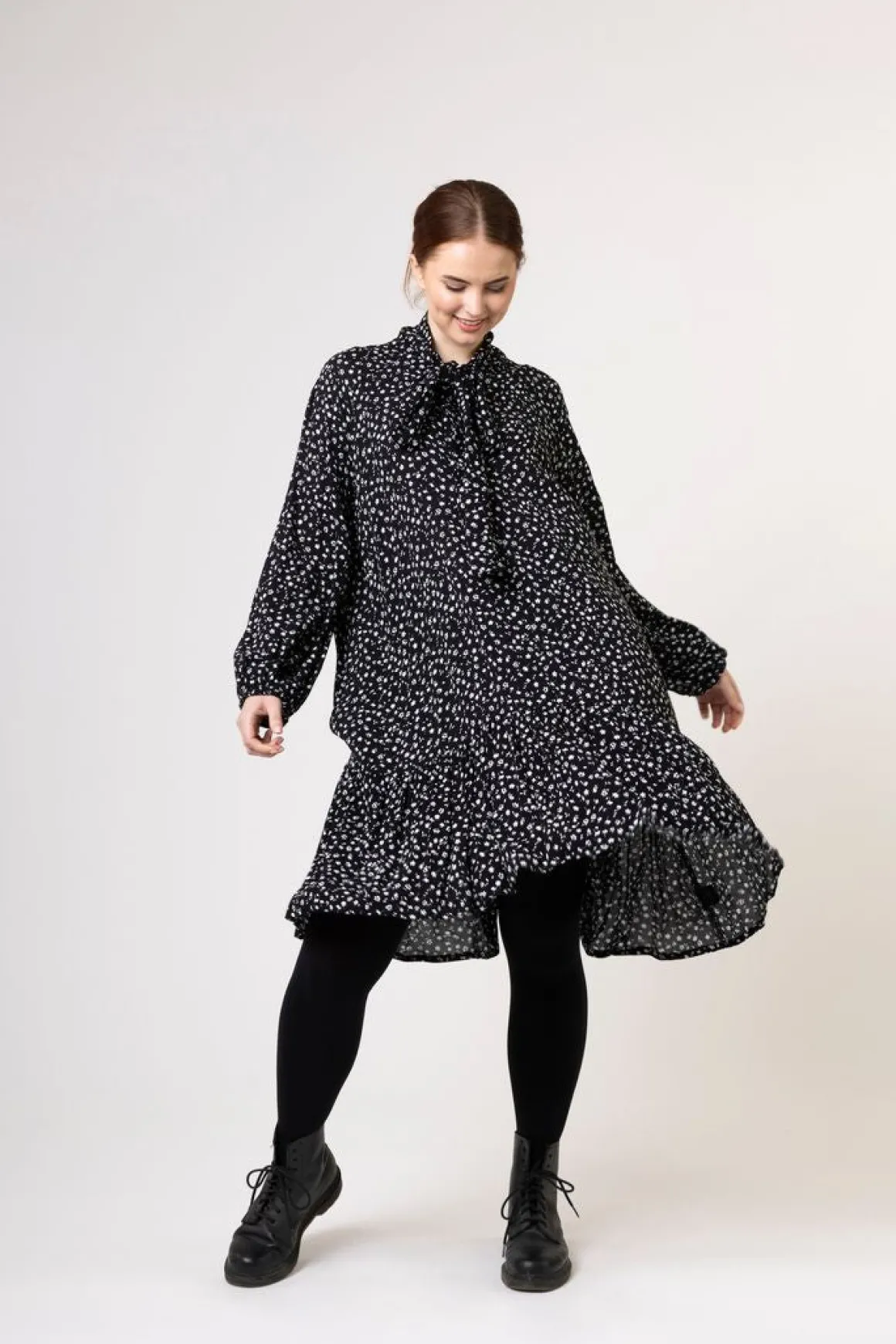 Paitamekko on klassikkotuote, joka sopii hyvin moniin eri tilaisuuksiin. Paitamekko on istuvuudeltaan väljä ja se levenee alaspäin. Mekko laskeutuu kauniista ja on polvipituinen. Mekon sivusaumoissa on taskut. Mekko on hieman pidempi takaa. Mekossa on pitkät väljähköt hihat ja kaulus.