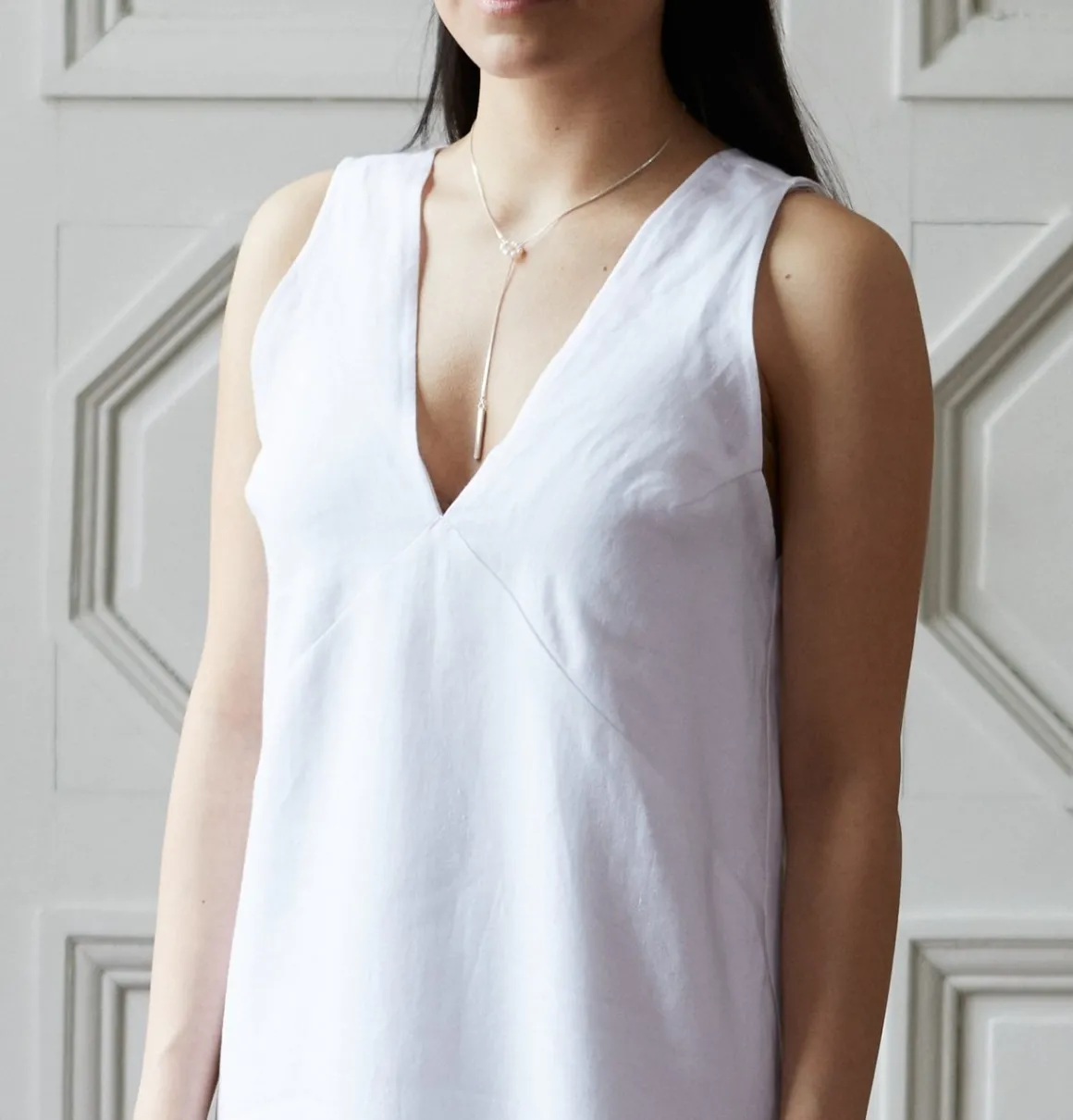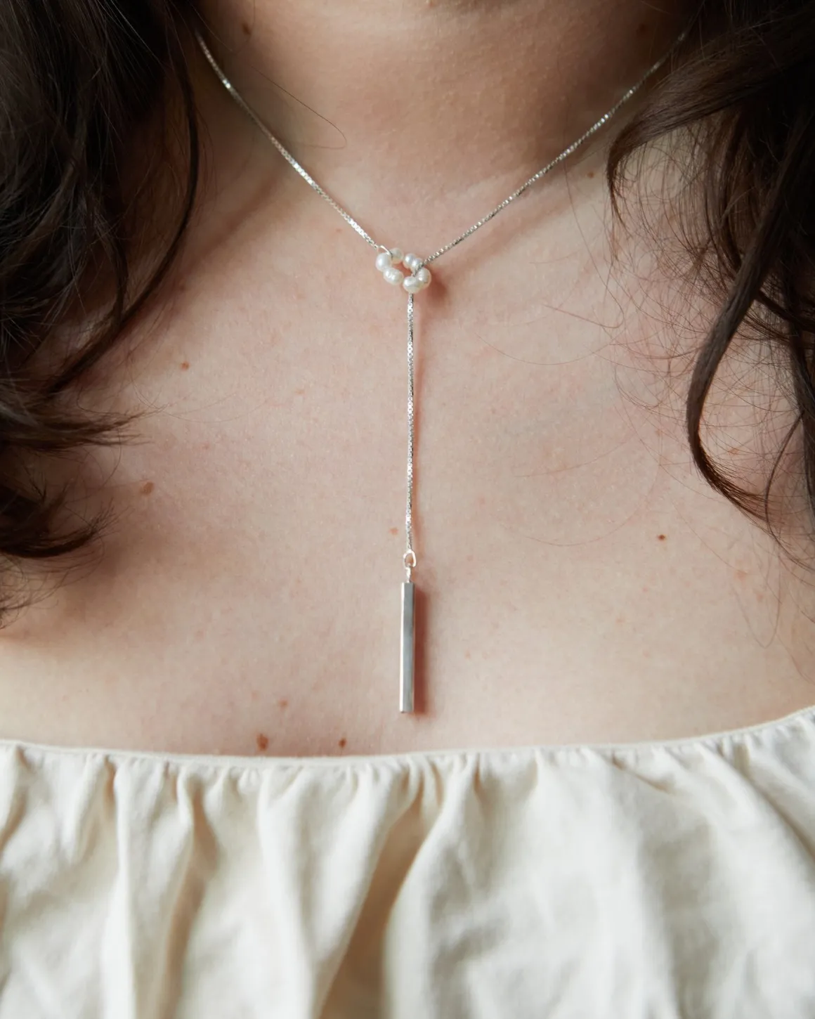 Our Perlina silver necklace is made out of sterling silver and fresh water pearls. The necklace is timeless and elegant.