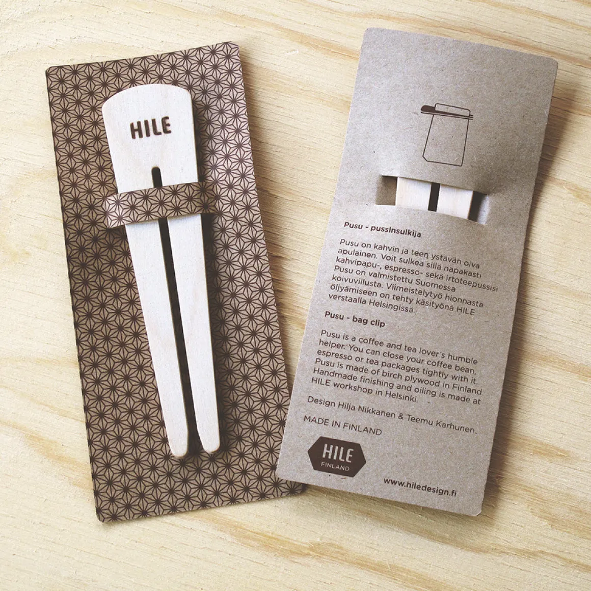 Pusu on kahvin kuin myös teen ystävän oiva apulainen. Voit sulkea sillä napakasti kahvipapu,- espresso- sekä irtoteepussisi. Pusu on valmistettu Suomessa kotimaisesta koivuviilusta.