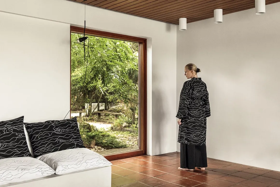 Kangas painettu Aitoossa, tuote ommeltu Keikyällä ja tarkastettu, laputettu ja pakattu Turussa. Sisätyyny valmistettu Jalasjärvellä.