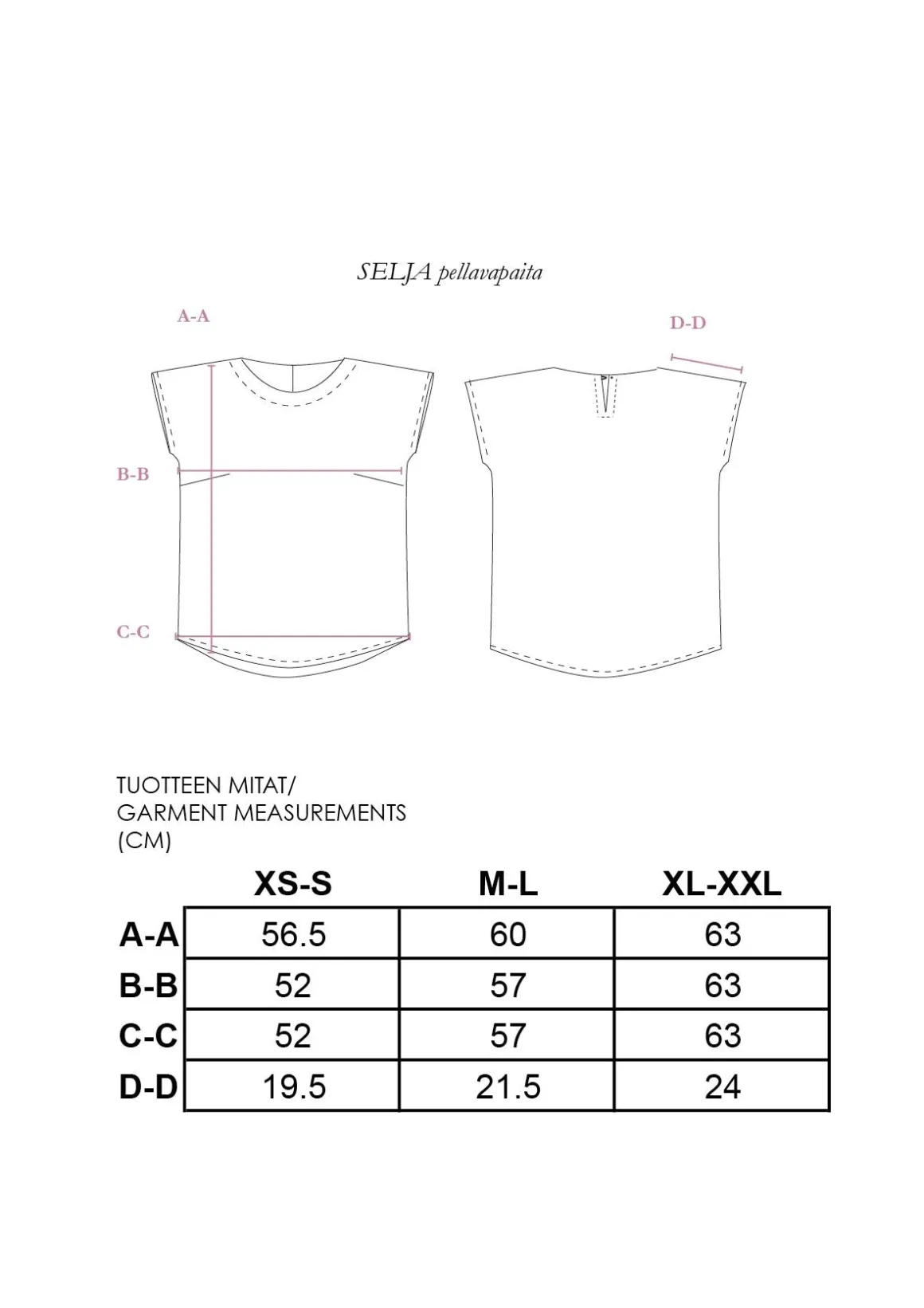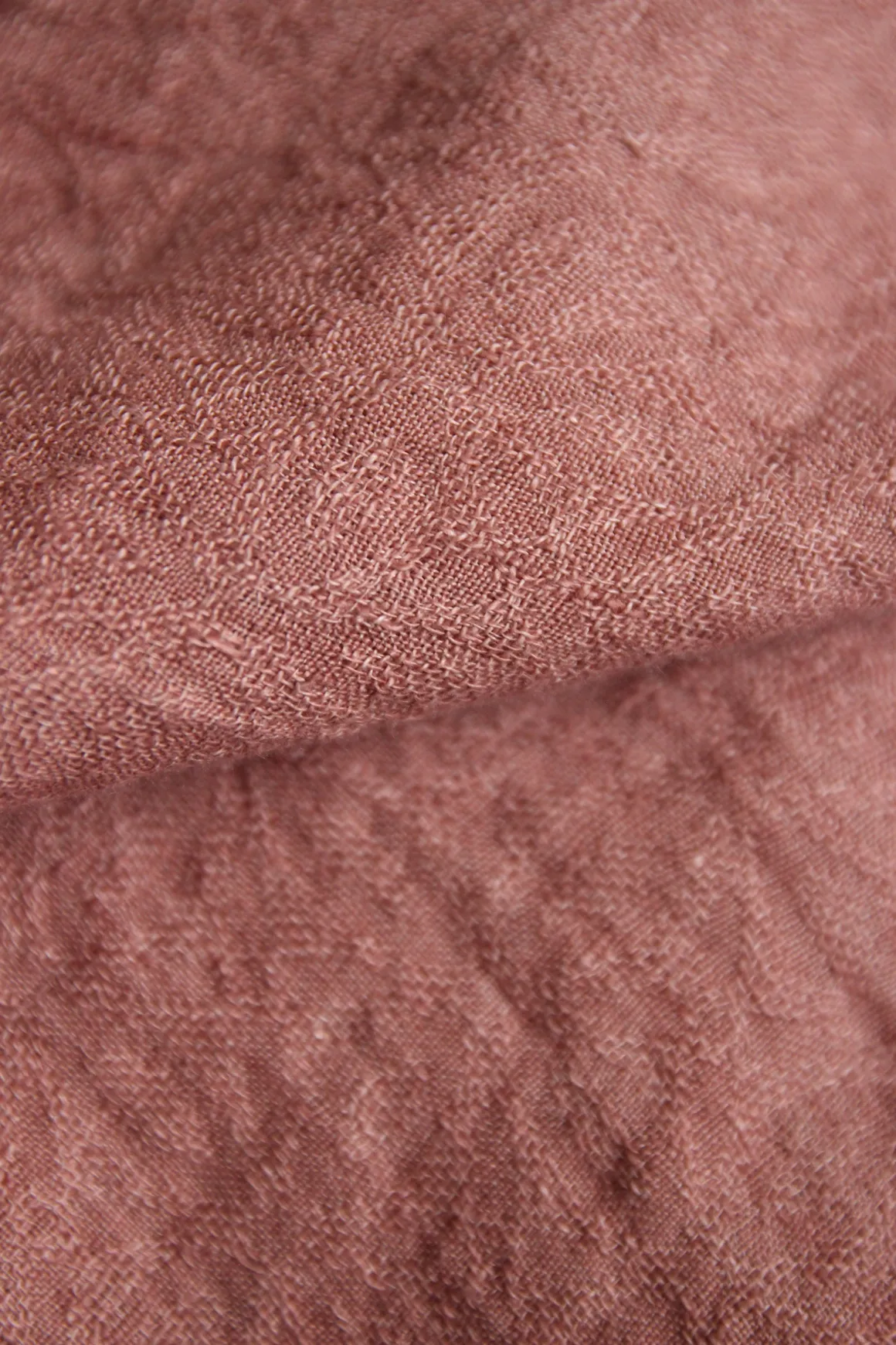 Materiaalina pehmoinen, esikutistettu pellavajacquard, jossa hienovaraisesti toistuva, yksivärinen struktuurikuvio. Kankaan sidos on melko löyhä, joten valitsethan tarpeeksi väljän koon, jotta vaate kestää pitkään käytössä.