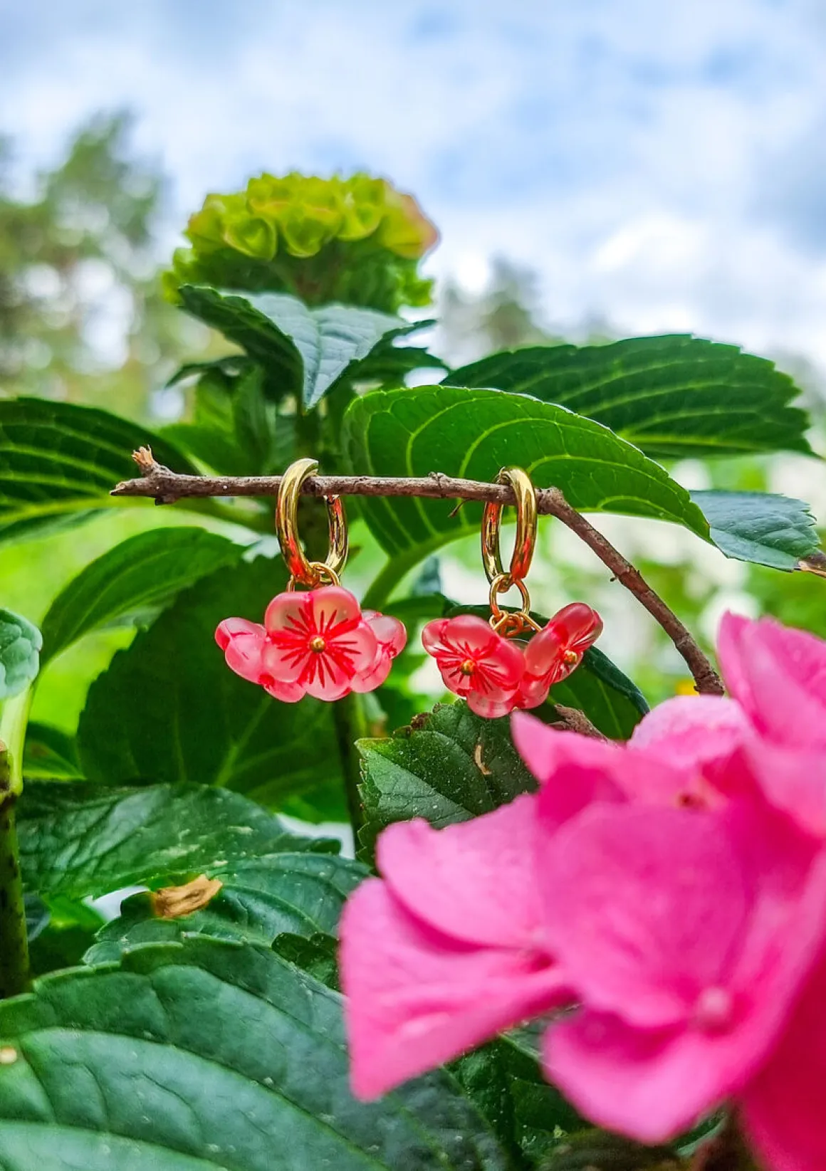 Materiaali: Metalliosat ovat14k kullattua kirurginterästä ja kukat ovat lasihelmiä.