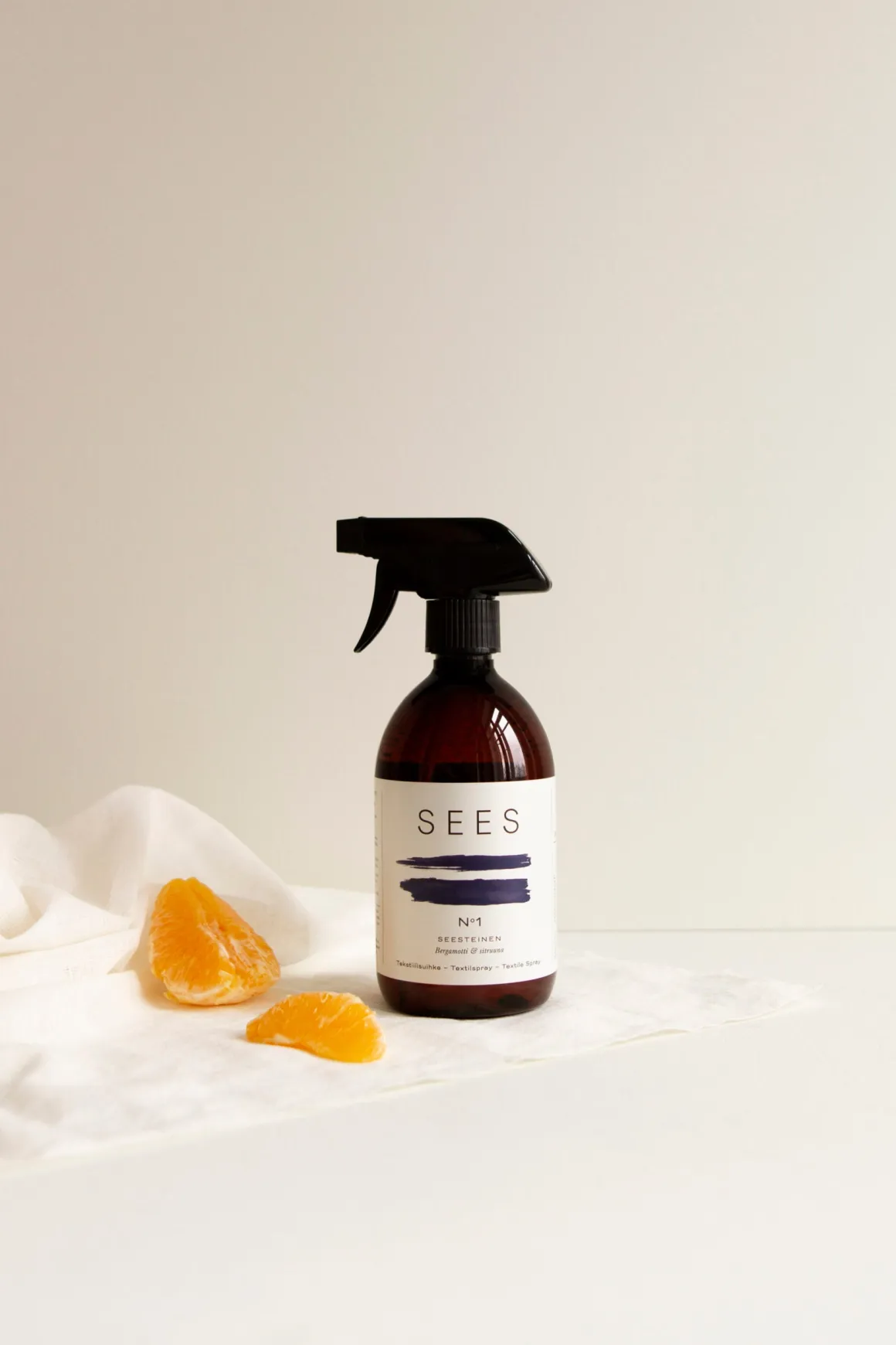 SEES No. 1 Tekstiilisuihke on Biohajoava ja kemikaaliton tunkkaisten hajujen neutraloija, joka sopii tekstiileille, joita on vaikea pestä pesukoneessa. Tekstiilisuihke raikastaa joogamatot, huonekalut, kotieläimiä kuljettaneen auton, jääkiekkovarusteet tai vaikkapa juoksulenkkarit. Tekstiilisuihke ei vain peitä epämiellyttäviä hajuja alleen, vaan neutraloi ne luonnollisesti.