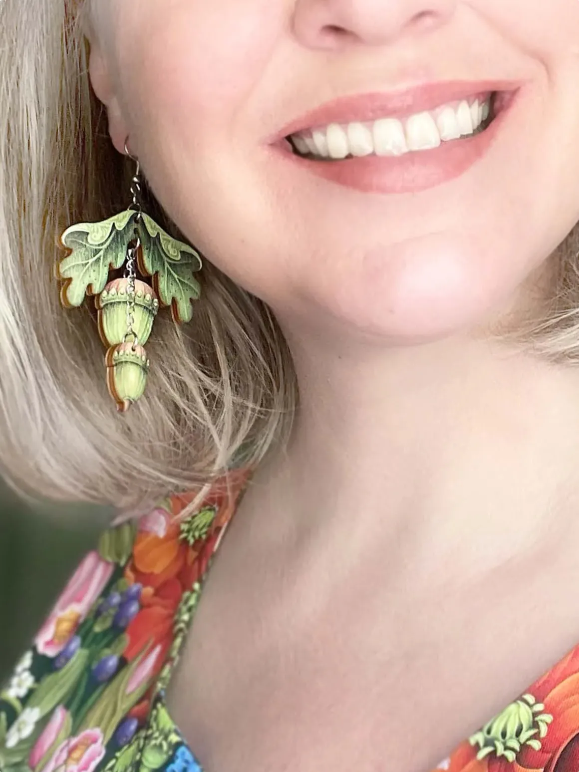 Korun puuosa on suomalaista koivuvaneria, metalliosat ruostumatonta terästä. Koru on molemmin puolin kuvioitu. Koru on pakattu kauniisti kukkivaan Design by KIETO -rasiaan.