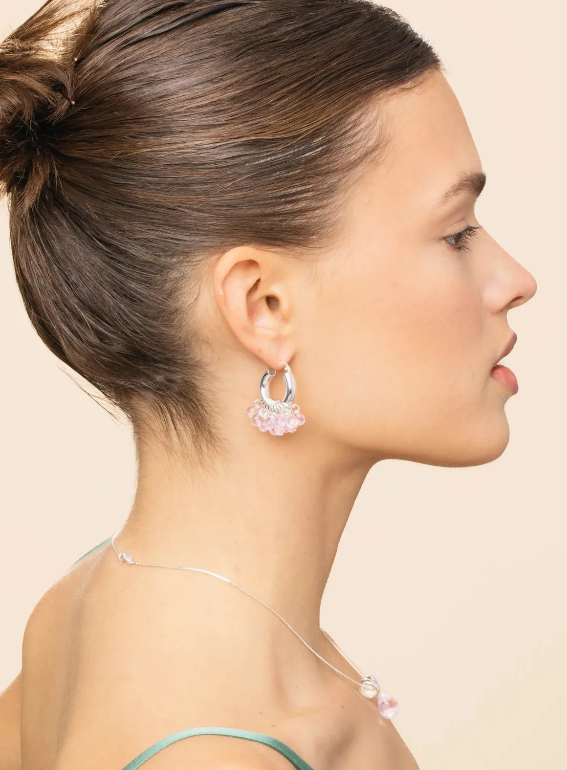 Whipped Dreams -korvakoruissa on hopealla päällystetyt 925 sterling-hopearenkaat ja lasihelmiä.